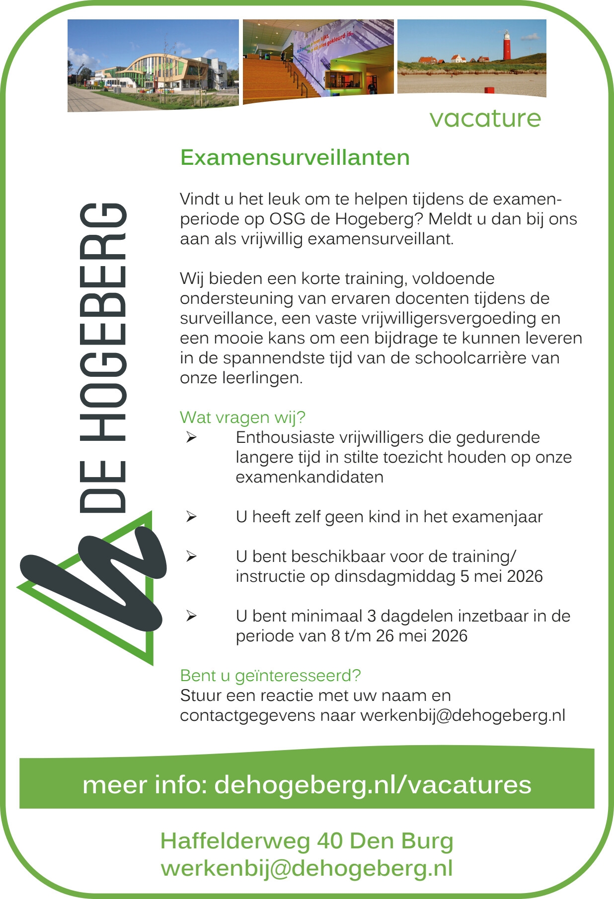 OSG de Hogeberg op Texel is op zoek naar Examensurveillanten
